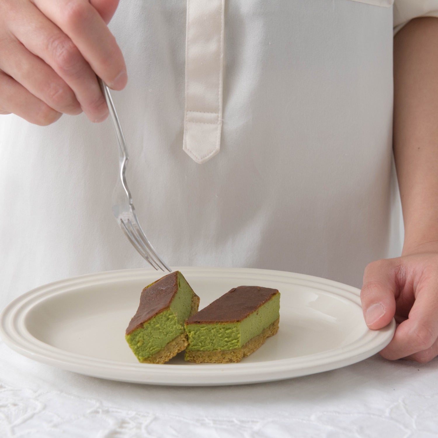 始めは風味豊かなチーズ、後から濃厚な抹茶、最後は優しいお茶の香りをゆっくり堪能できるスイーツです。