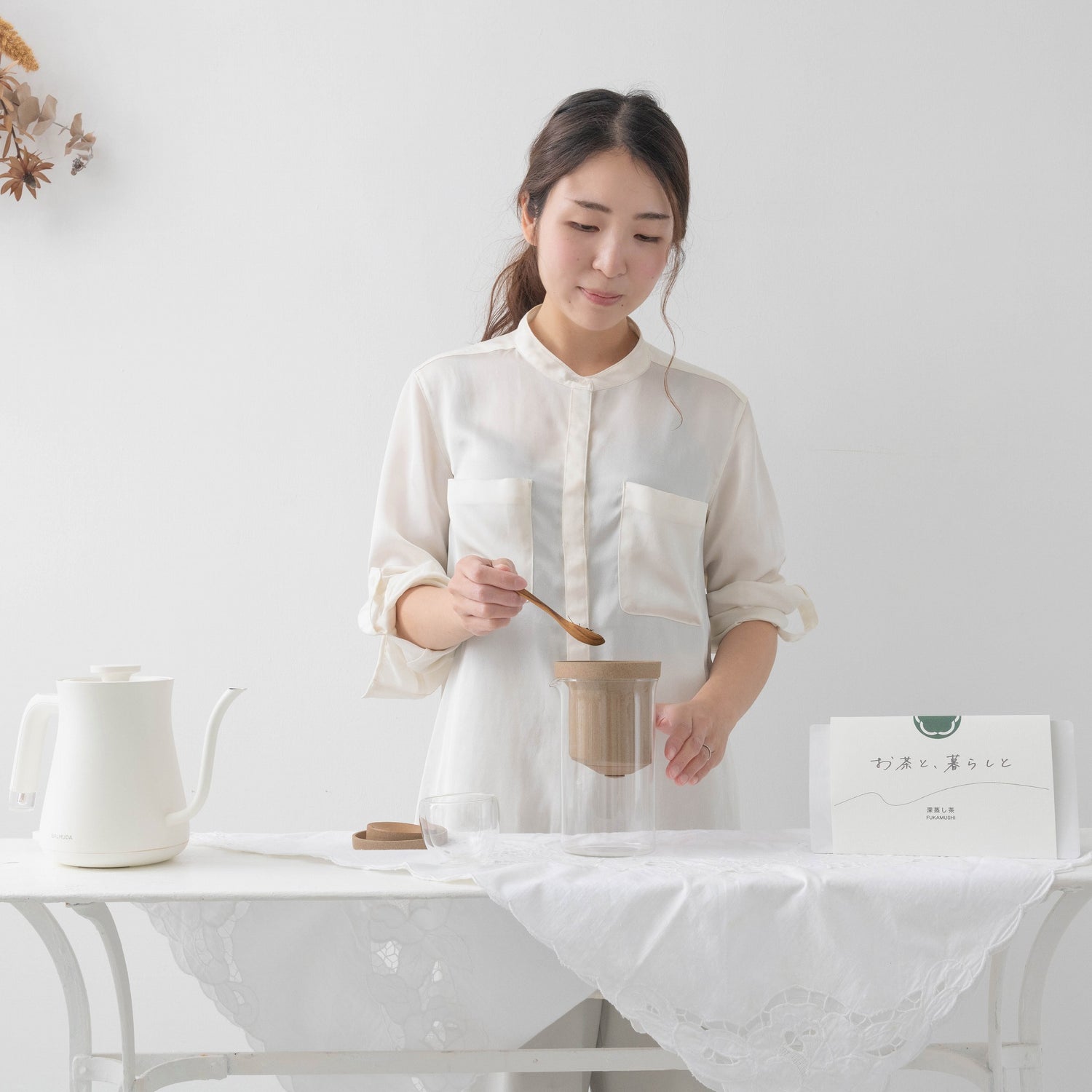 どうぞセットになっている当店の深蒸し茶をお使いいただければゆっくりとお茶が抽出されていく様をお愉しみいただけるかと存じます。
